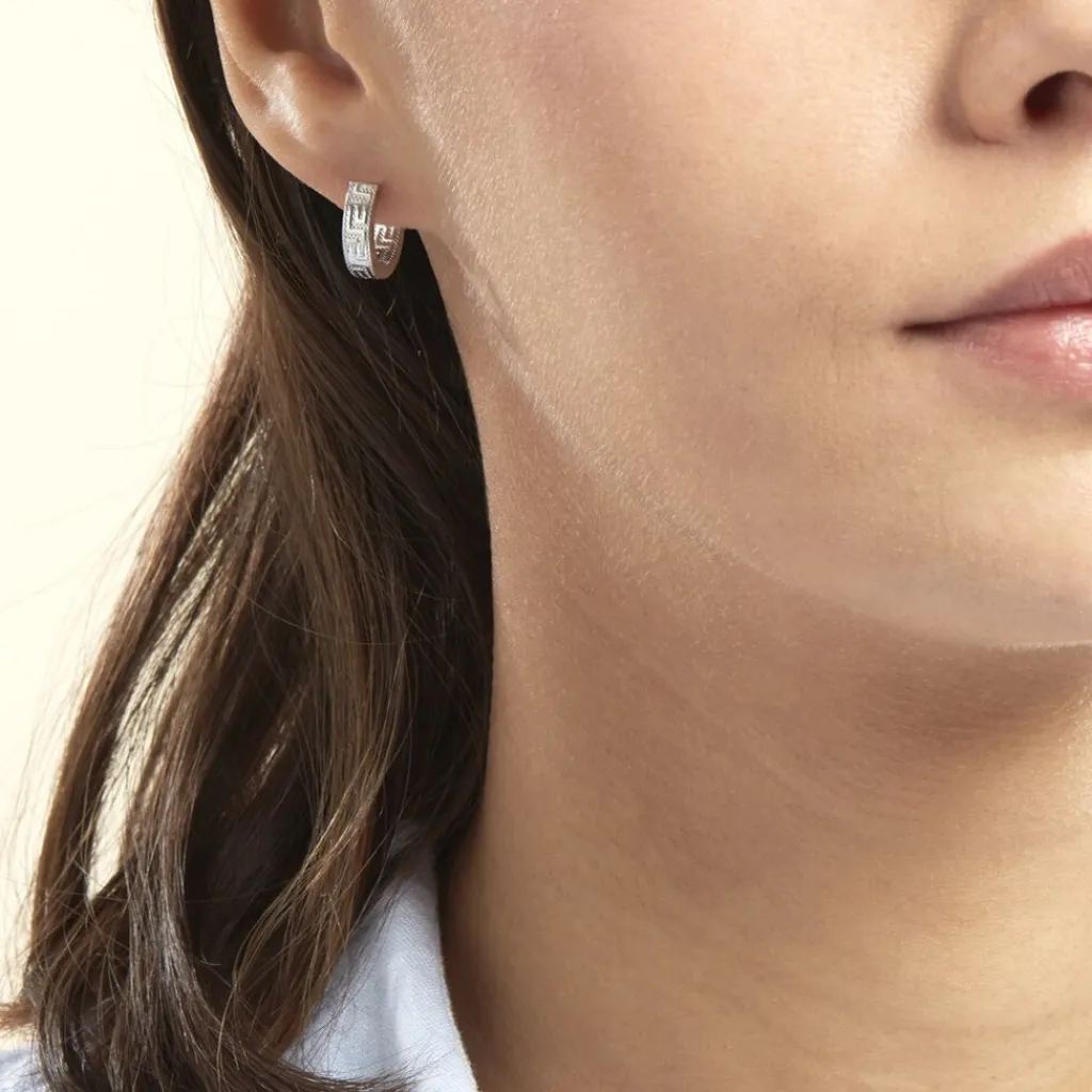 Créoles Or Blanc 375/1000 Fil Carré Grec Largeur 4mm Diamètre 10mm