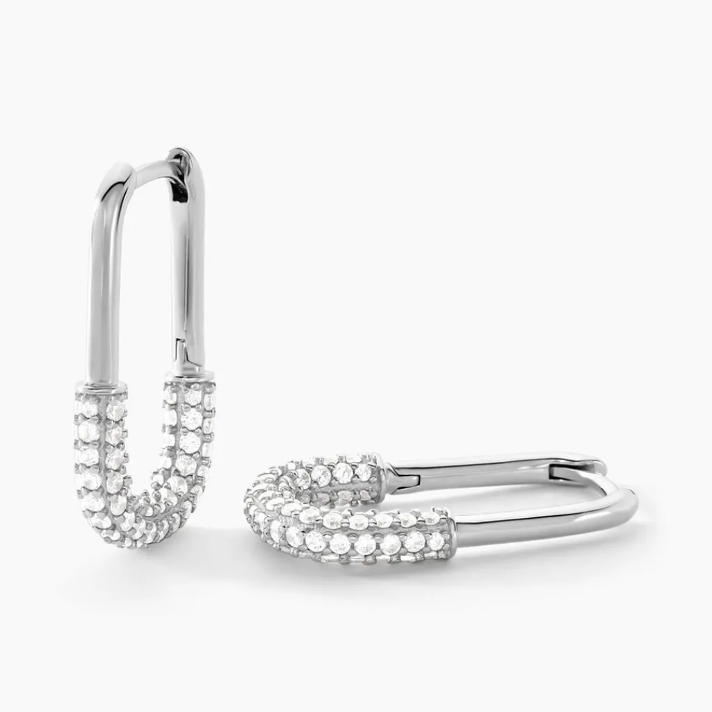 Créoles Rectangulaires Argent Blanc 925/1000 Pavage Oxydes De Zirconium 22.9*7.66mm