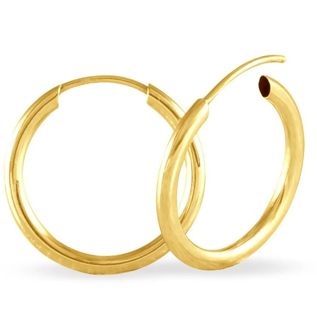 Créoles Or Jaune 375/1000 Fil Flexible Lisse Largeur 1.6mm Diamètre 15mm