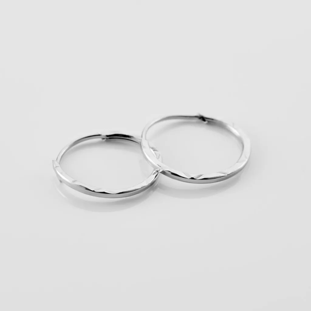 Créoles Or Blanc 375/1000 Fil Flexible Cisele Largeur 1mm Diamètre 12mm