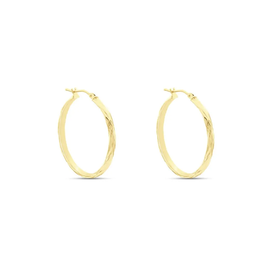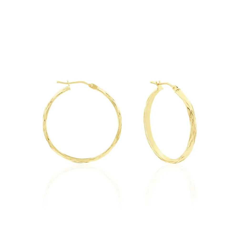 Créoles Or Jaune 375/1000 Demi Jonc Effet Diamanté épaisseur 2.5mm Diamètre 25mm