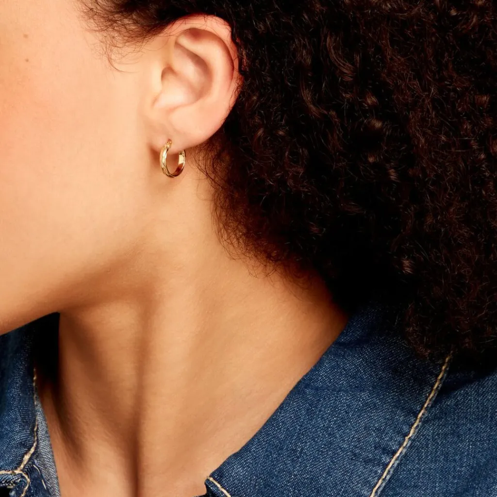 Créoles Or Jaune 375/1000 Demi Jonc Effet Diamanté épaisseur 2.5mm Diamètre 10mm