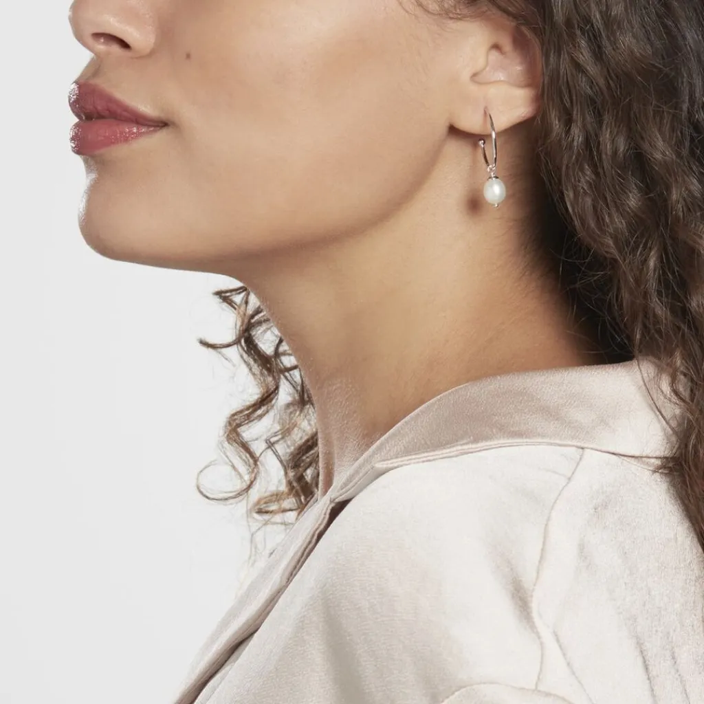 Creoles Ouvertes Argent Blanc 925/1000 Perle De Culture 7-7.5mm