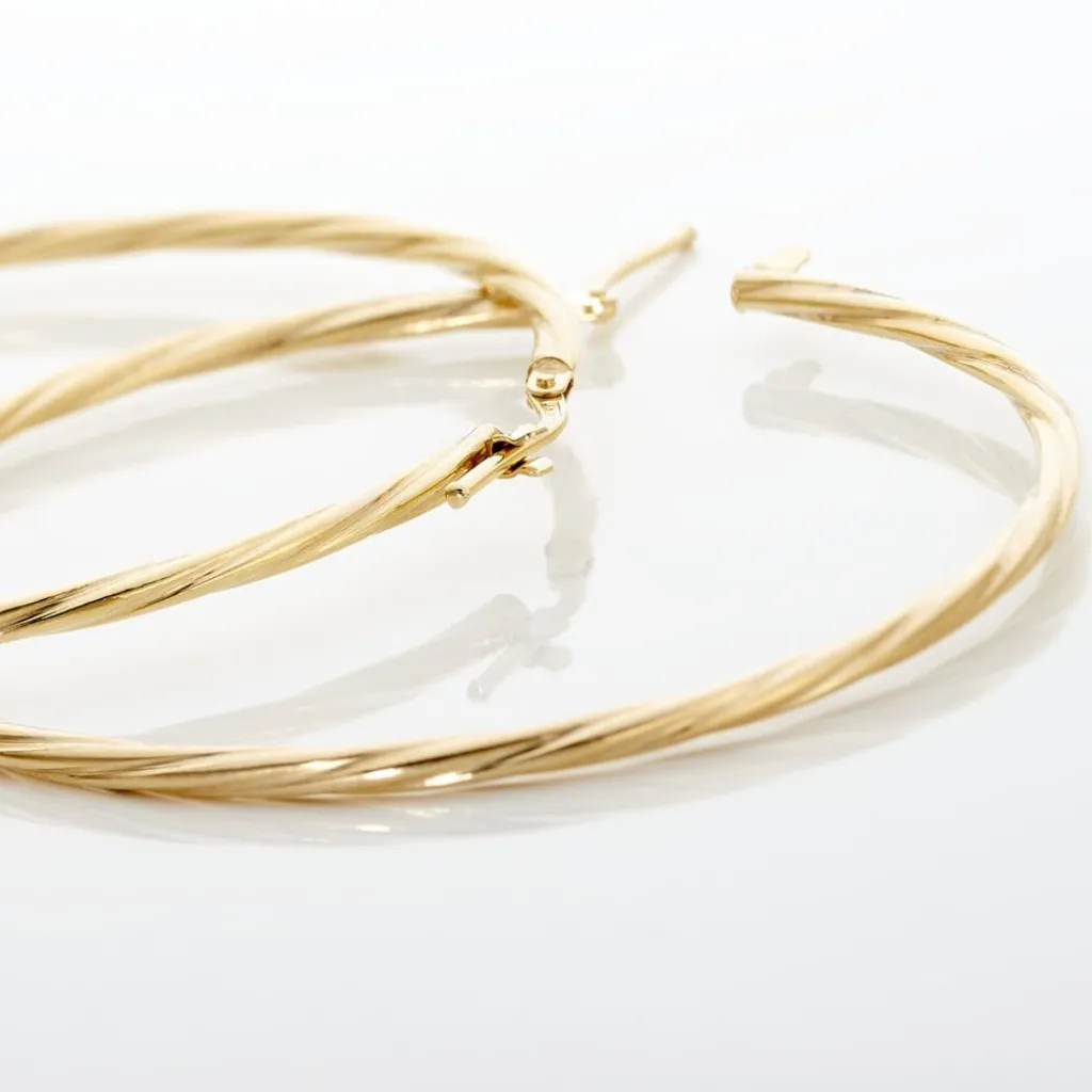 Créoles Or Jaune 375/1000 Fil Rond Torsadé Largeur 2mm Diamètre 50mm
