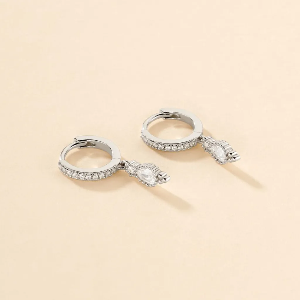 Créoles Argent Blanc 950/1000 Goutte Oxydes De Zirconium Serti 4 Griffes Diamètre 10mm