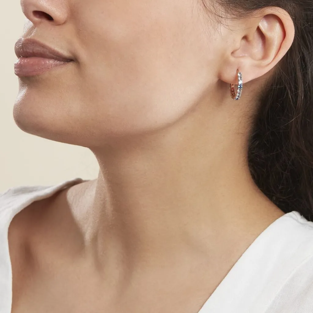 Creoles Plaqué Or Jaune Pierres Bleues Diametre 15mm