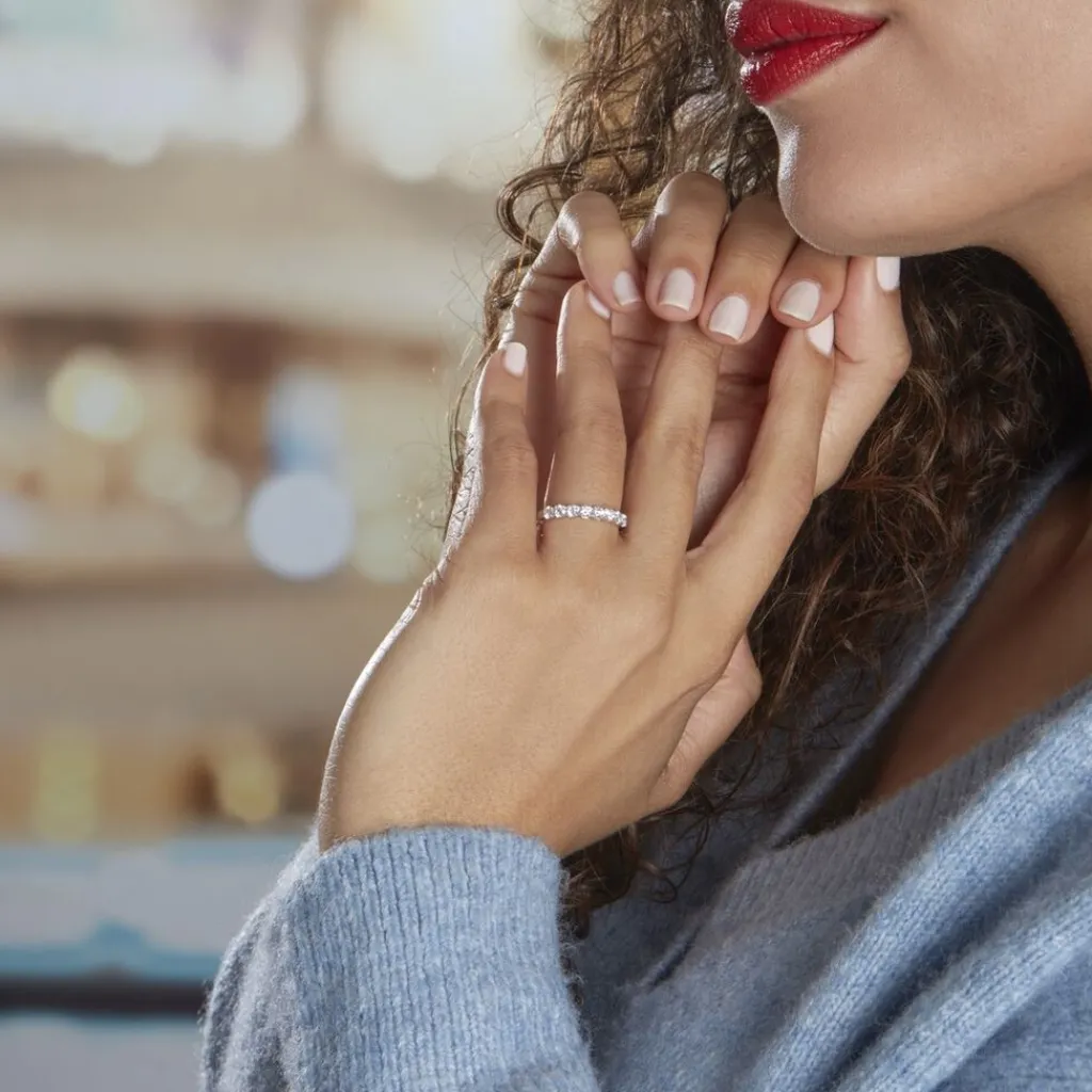 Demi-alliance Or Blanc 750/1000 Diamants Synthétique 0.59cts Sertis Griffes