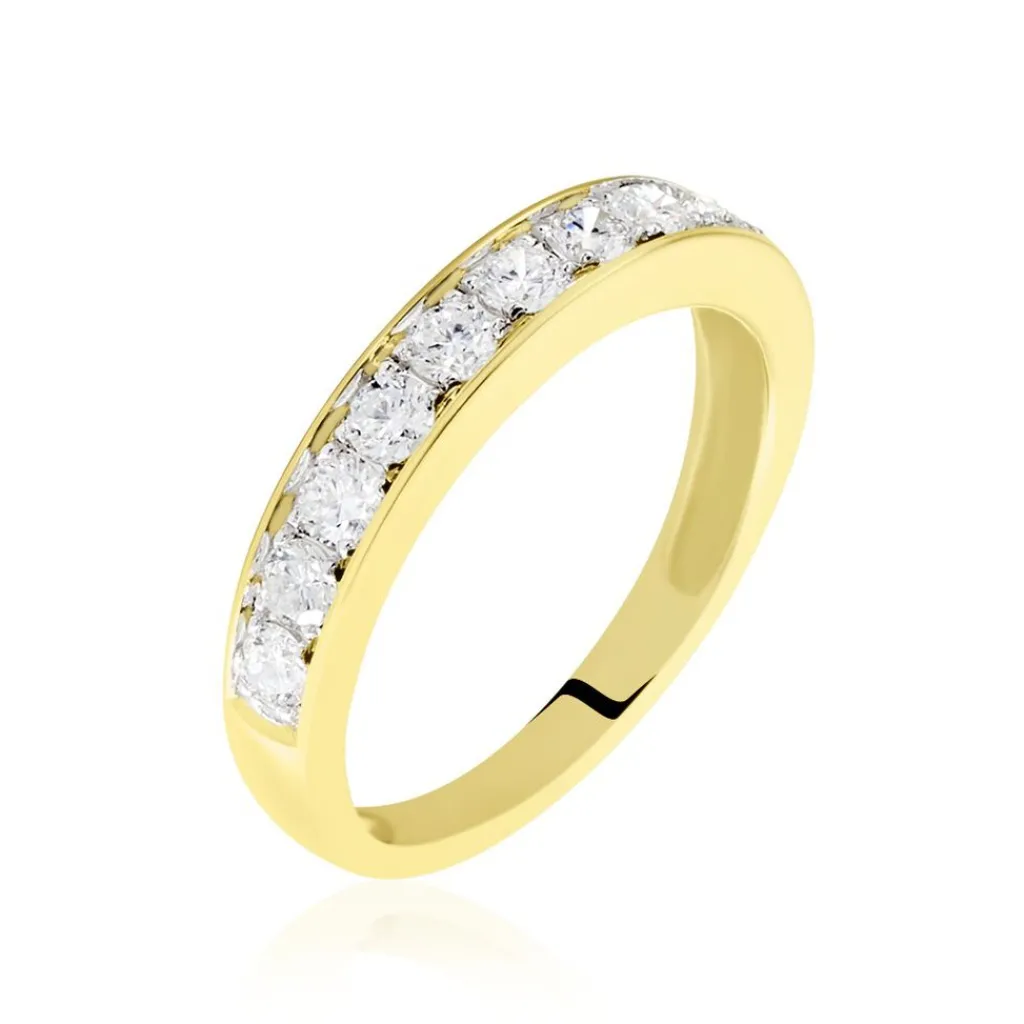 Demi-alliance Or Jaune 750/1000 Diamants Synthétique 0.70cts Sertis Grain