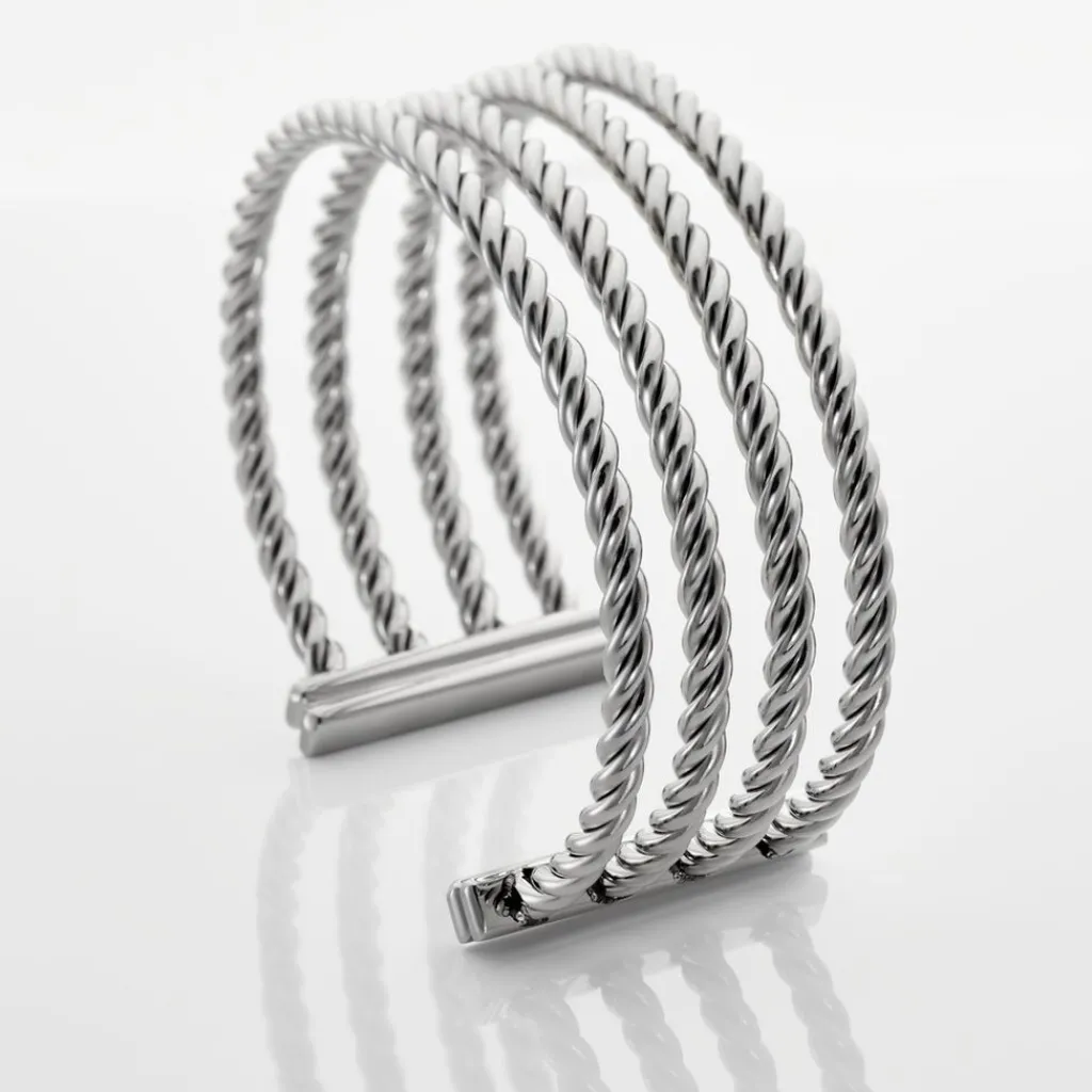 Jonc Ouvert Acier Blanc Multirang Torsades Diametre 56mm