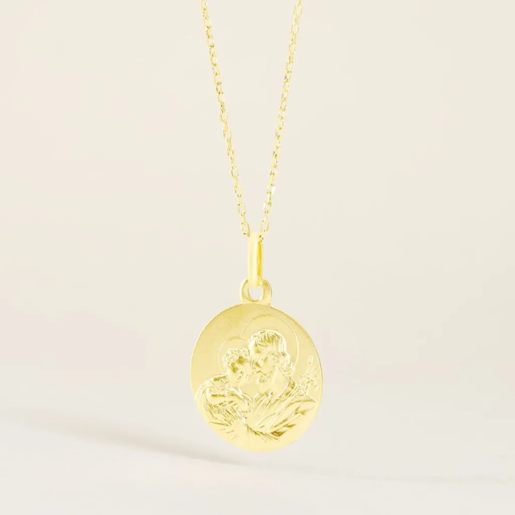 Médaille Or Jaune 750/1000 Asclepie Saint Joseph Diamètre 18MM