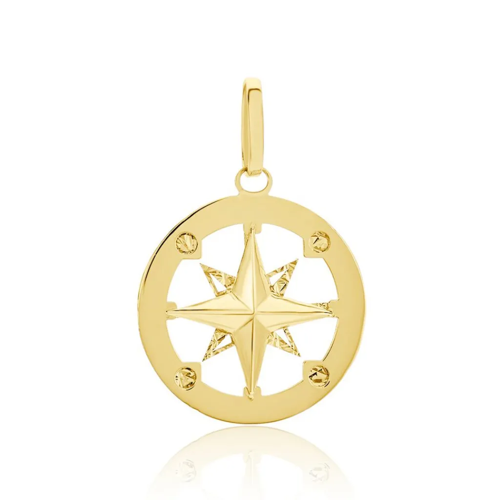 Pendentif Or Jaune 750/1000 Rose Des Vents Diamètre 1.65cm