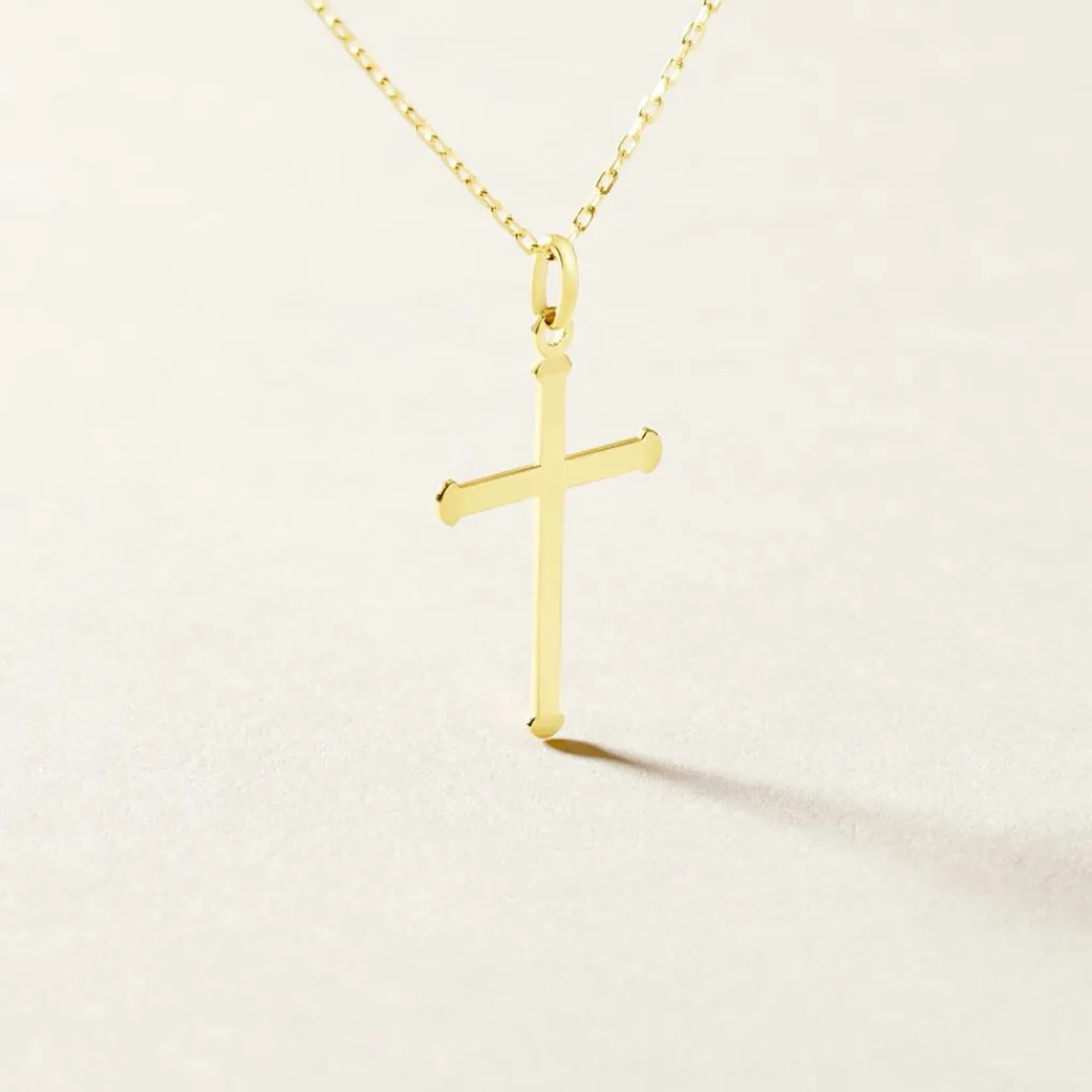Pendentif Or Jaune 375/1000 Croix Religieuse Lisse