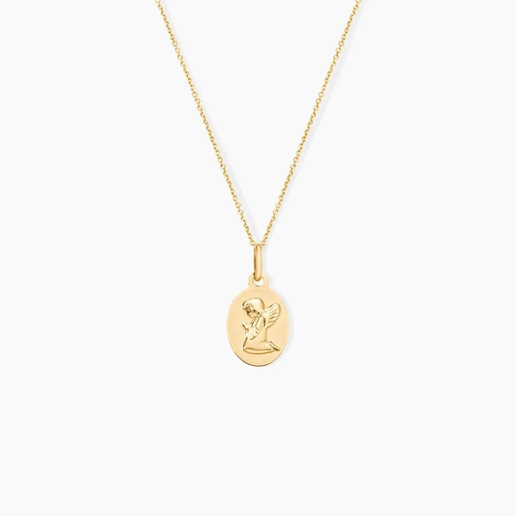 Pendentif Or Jaune 375/1000 Ovale Motif Ange A Genoux