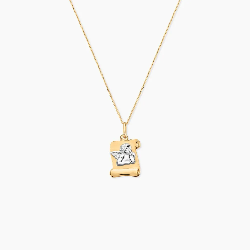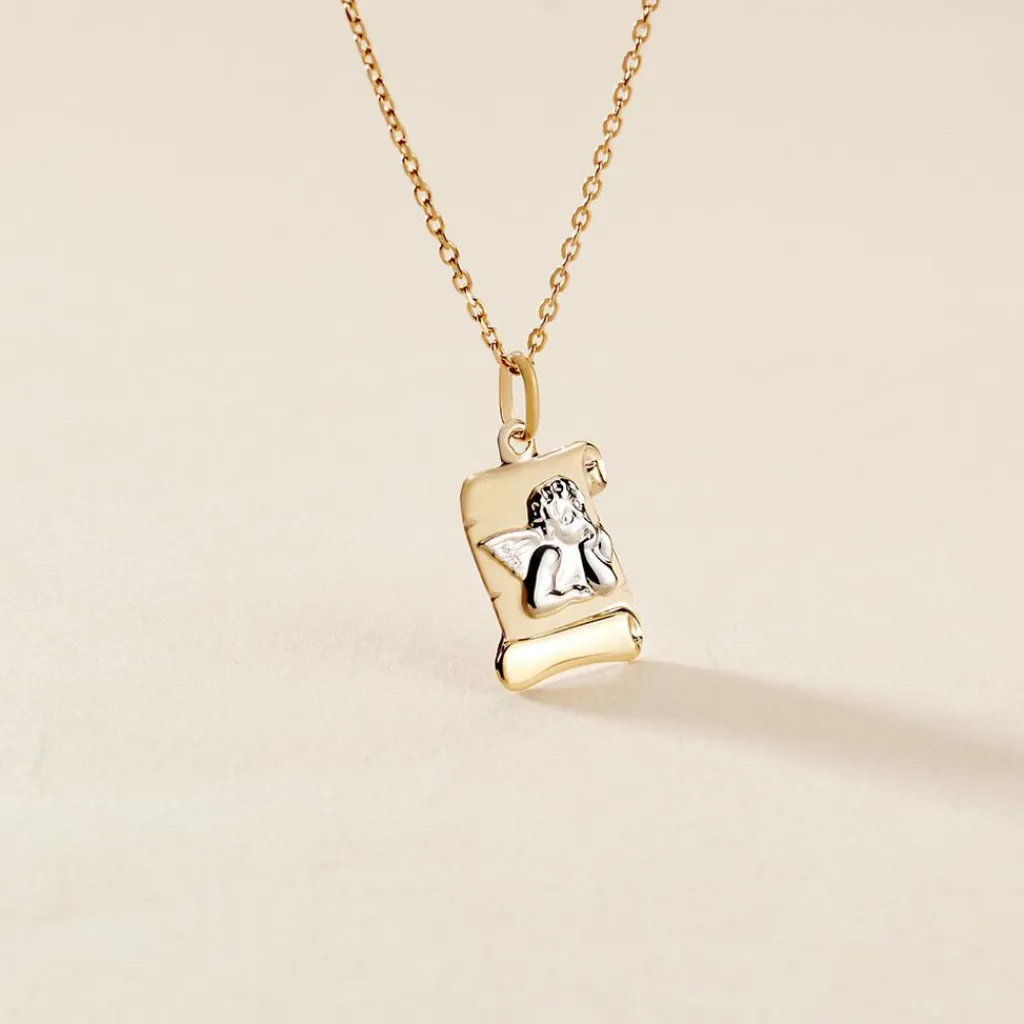 Pendentif Or Bicolore 375/1000 Parchemin Ange Penseur