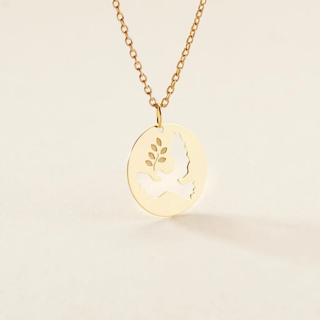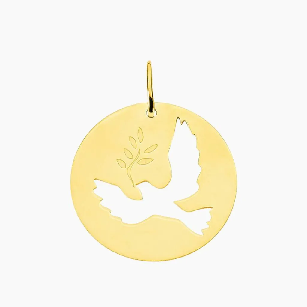 Medaille Or Jaune 375/1000 Motif Colombe Ajouree