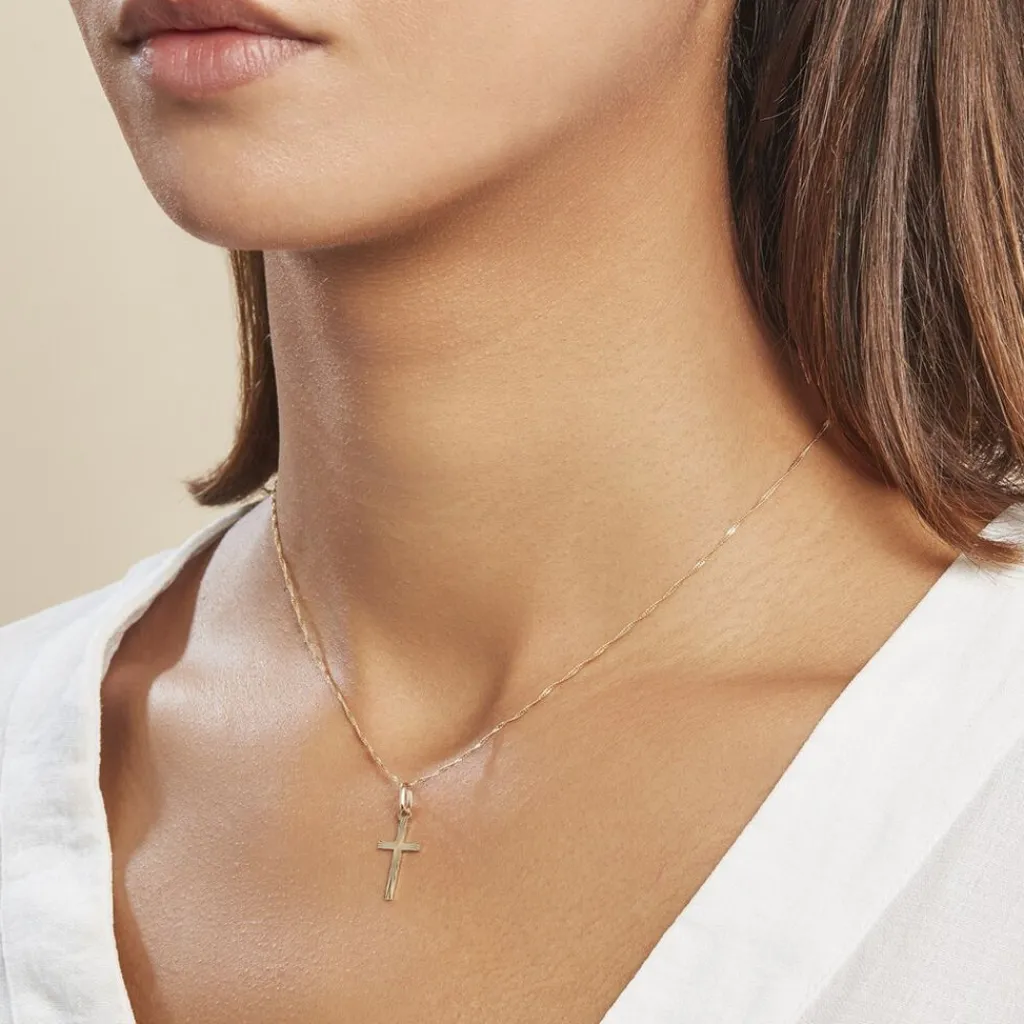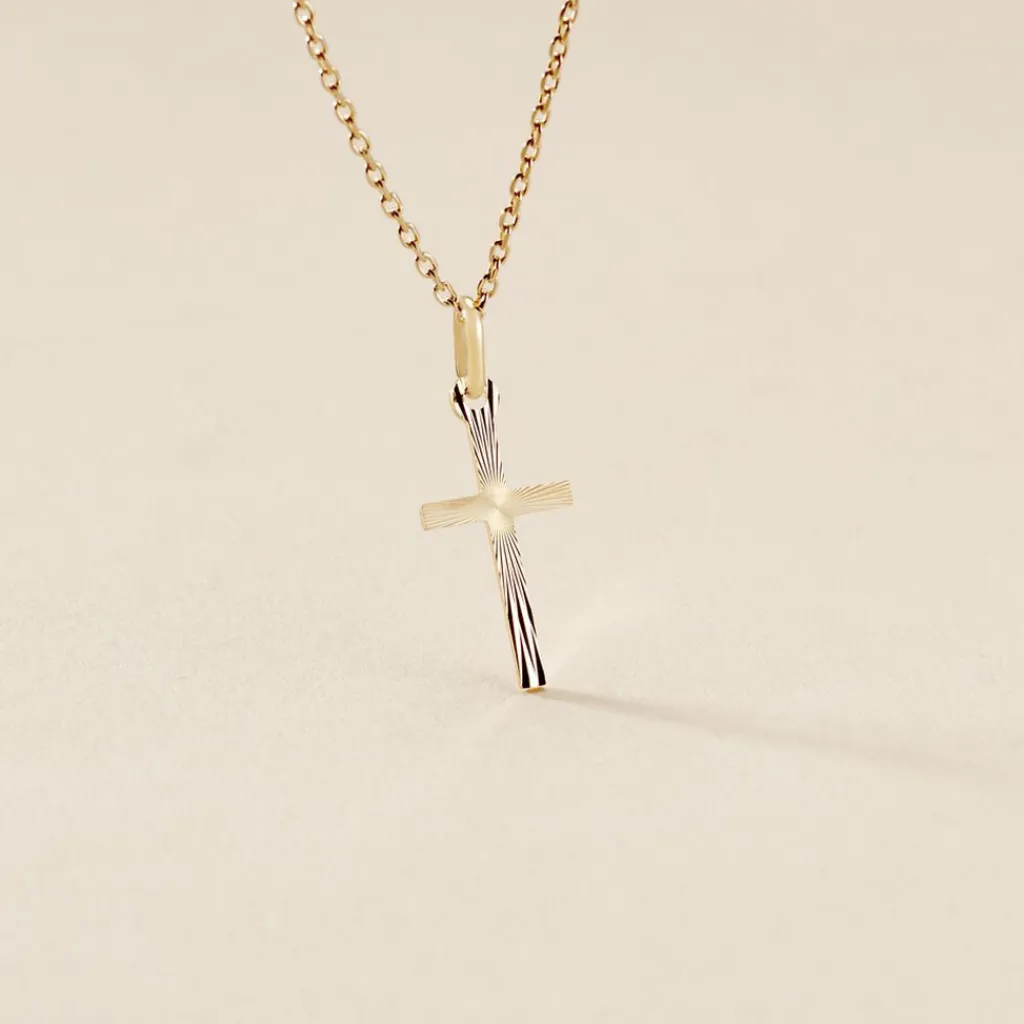 Pendentif Or Jaune 375/1000 Croix Religieuse Striée