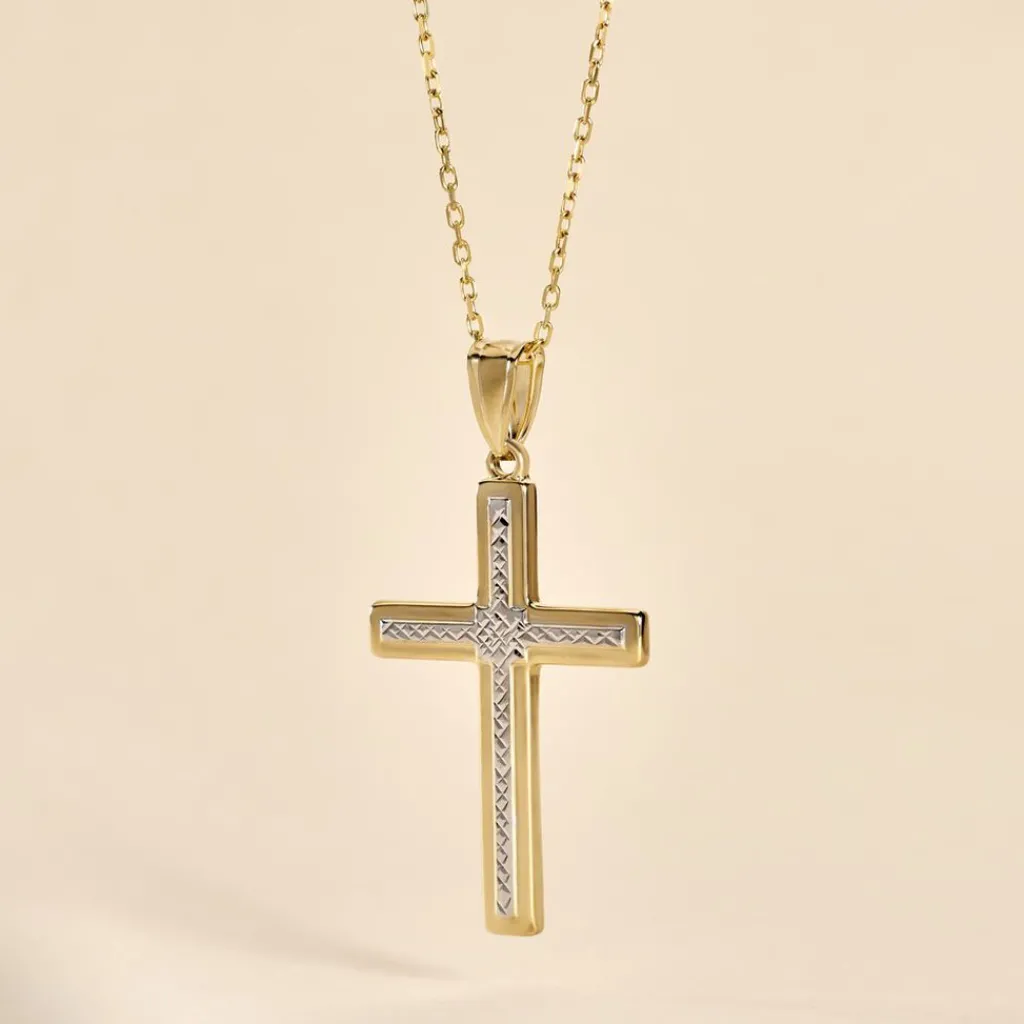 Pendentif Or Bicolore 750/1000 Croix Ciselée