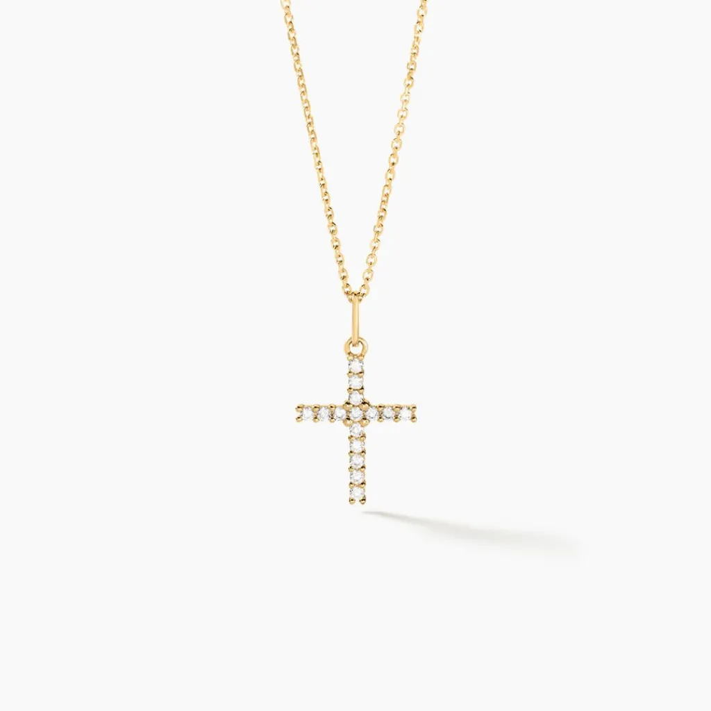 Pendentif Or Jaune 375/1000 Croix Oxydes De Zirconium Serti Griffes