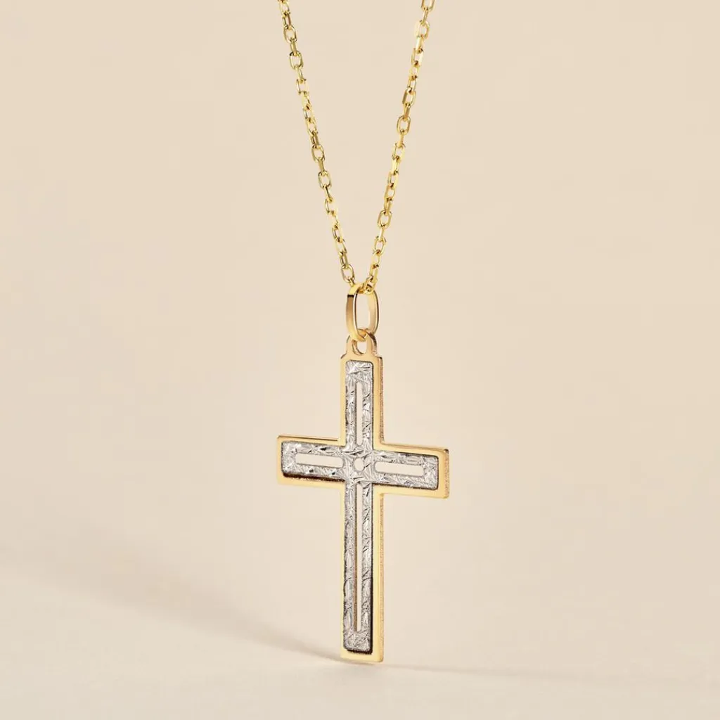 Pendentif Or Bicolore 375/1000 Motif Croix Diamantee