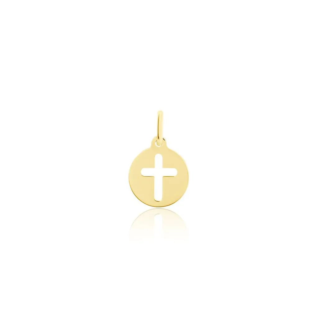 Pendentif Or Jaune 375/1000 Rond Croix Ajourée Diamètre 9.5mm