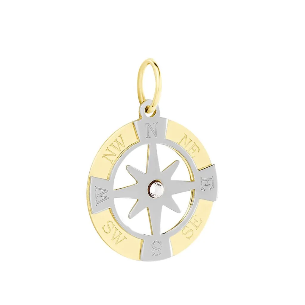Pendentif Or Bicolore 375/1000 Rose Des Vents Oxyde De Zirconium Centrale Diamètre 16.5mm