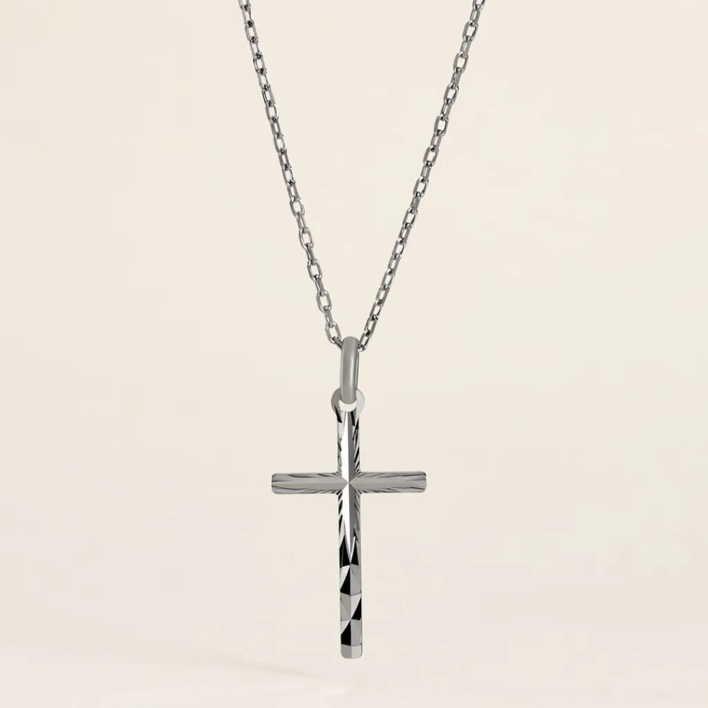Pendentif Argent Blanc 925/1000 Croix Cisele