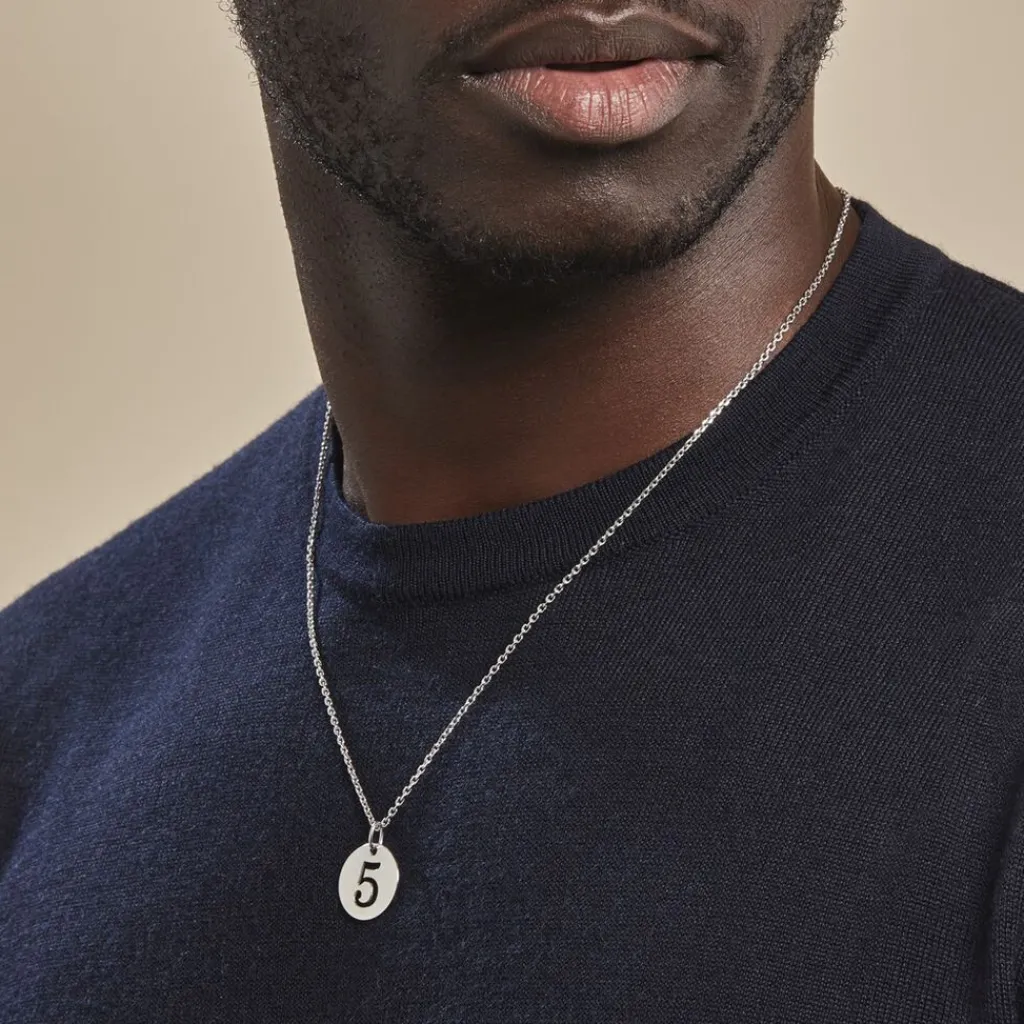 Pendentif Argent Blanc 925/1000 Pastille Chiffre 5 Diametre 18mm