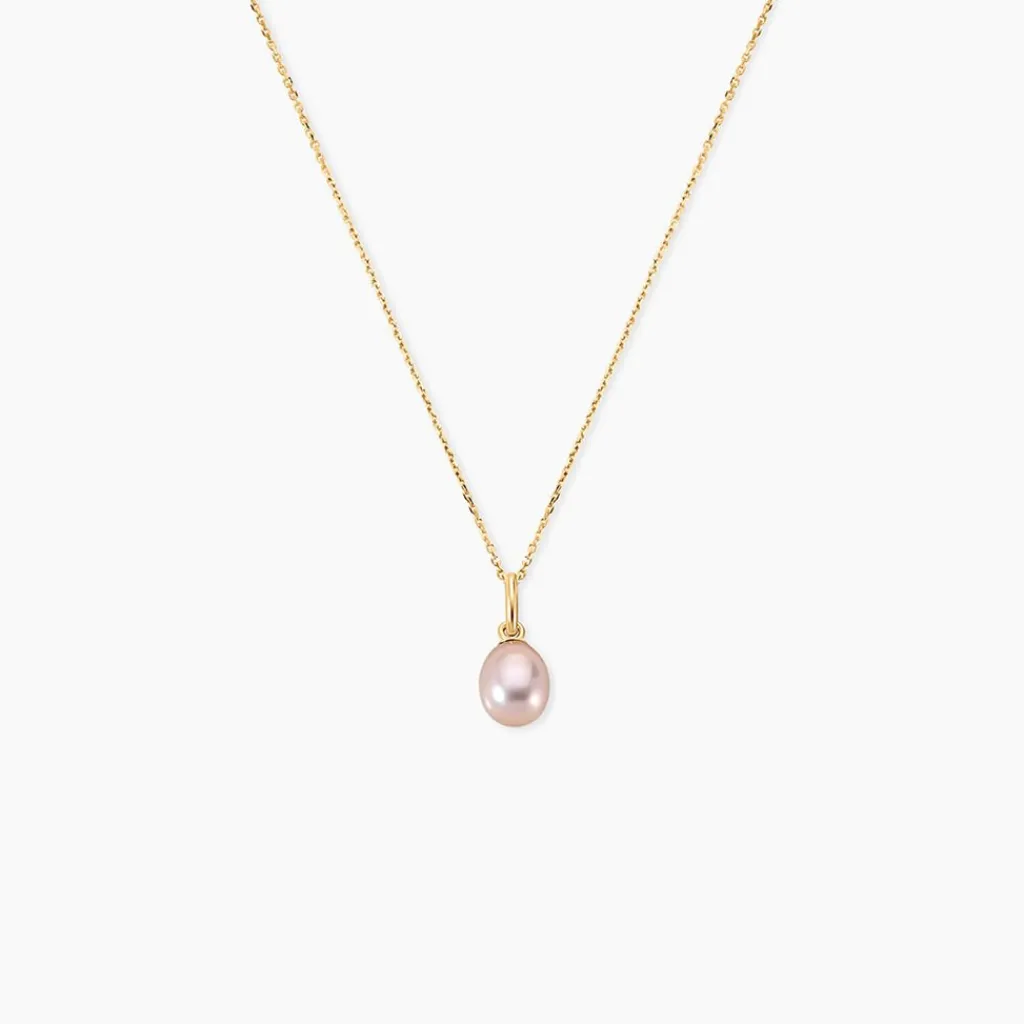 Pendentif Or Jaune 375/1000 Perle De Culture Rose 6.5/7mm