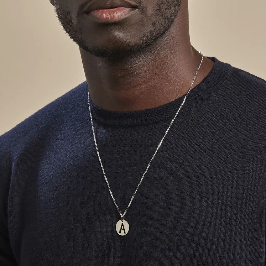 Pendentif Argent Blanc 925/1000 Pastille Lettre A Diametre 18mm