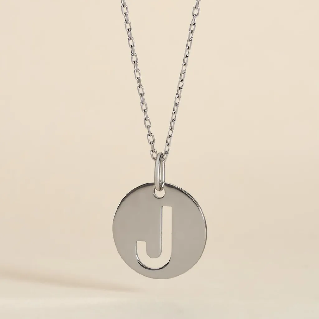 Pendentif Argent Blanc 925/1000 Pastille Lettre J Diametre 18mm
