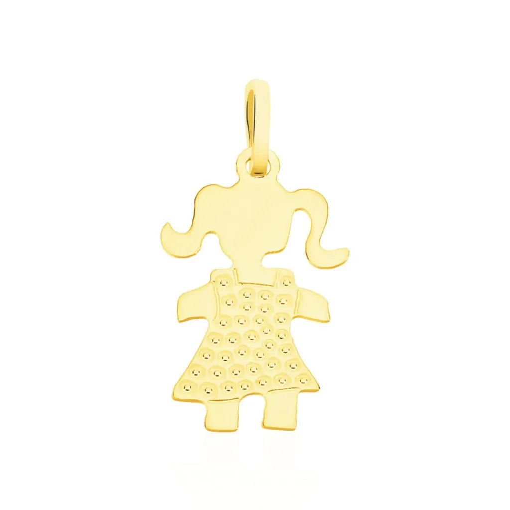 Pendentif Or Jaune 375/1000 Forme Petite Fille Avec Robe