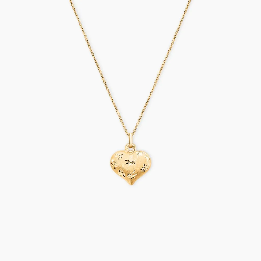 Pendentif Or Jaune 375/1000 Coeur Mat Et Brillant