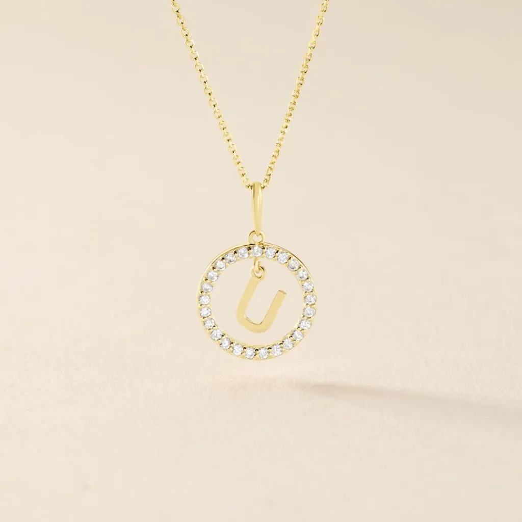 Pendentif Lettre U Or Jaune 375/1000 Entourage Oxyde De Zirconium Blanc