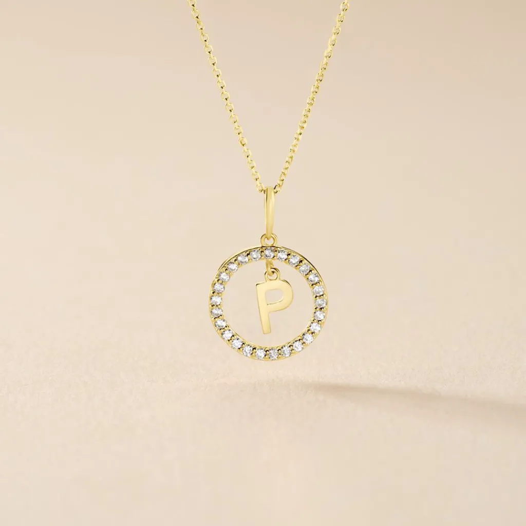 Pendentif Lettre P Or Jaune 375/1000 Entourage Oxyde De Zirconium Blanc