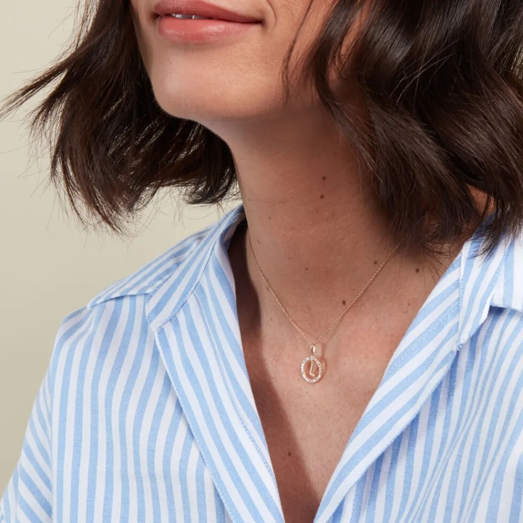 Pendentif Lettre L Or Jaune 375/1000 Entourage Oxyde De Zirconium Blanc