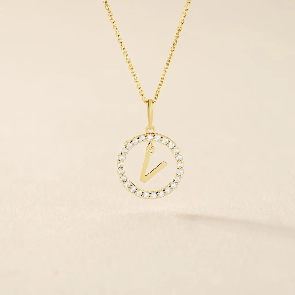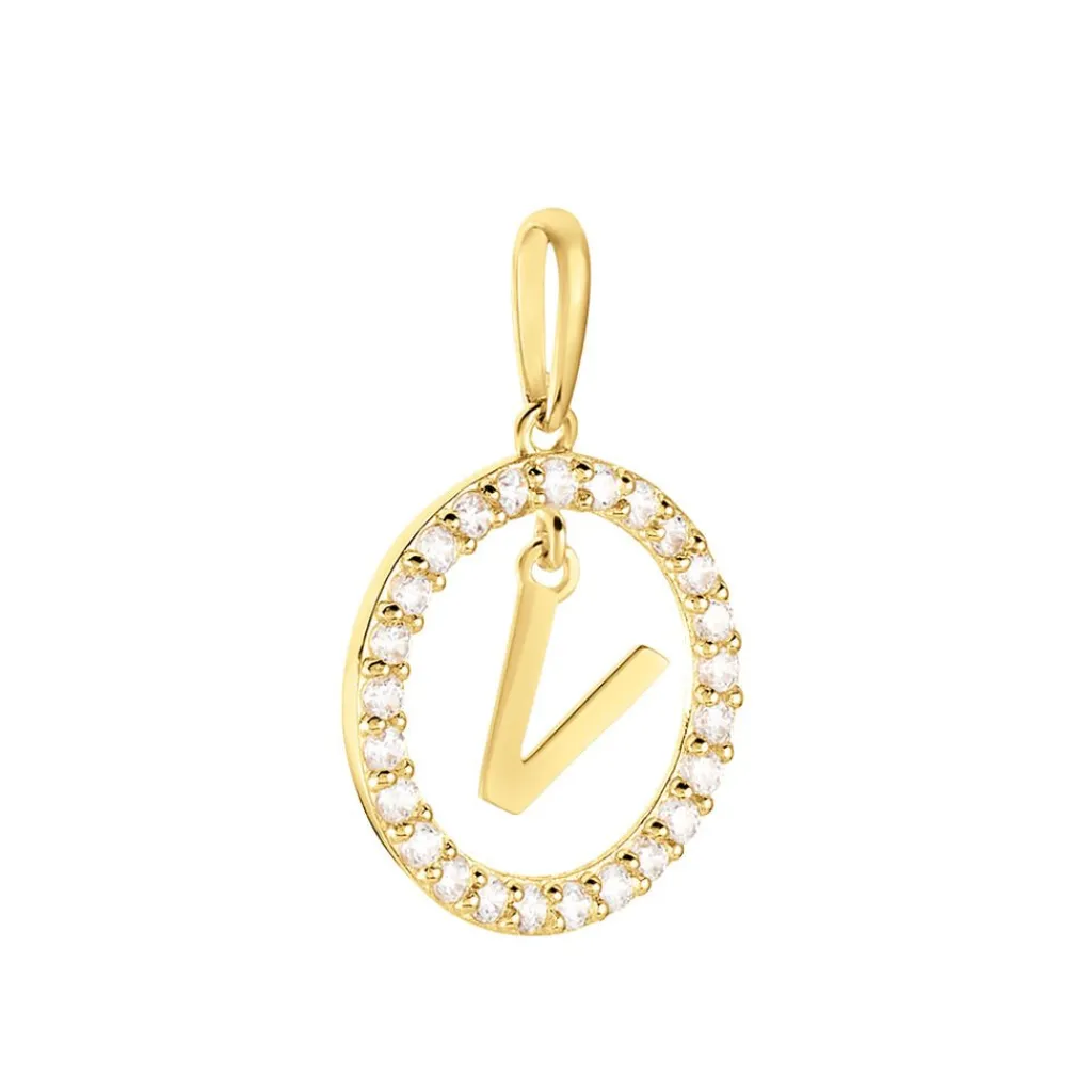 Pendentif Lettre V Or Jaune 375/1000 Entourage Oxyde De Zirconium Blanc