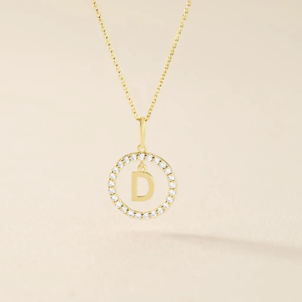 Pendentif Lettre D Or Jaune 375/1000 Entourage Oxyde De Zirconium Blanc