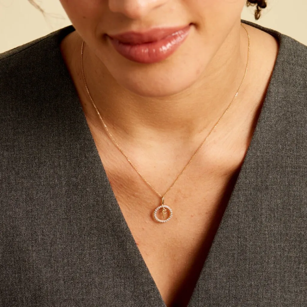 Pendentif Lettre F Or Jaune 375/1000 Entourage Oxyde De Zirconium Blanc