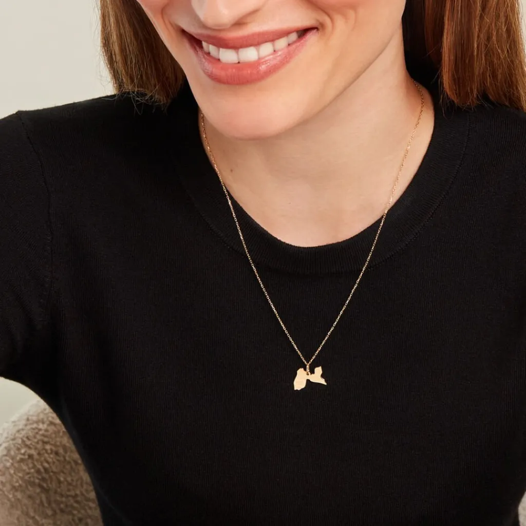 Pendentif Or Jaune 750/1000 Carte Guadeloupe Avec Villes 1.2cm