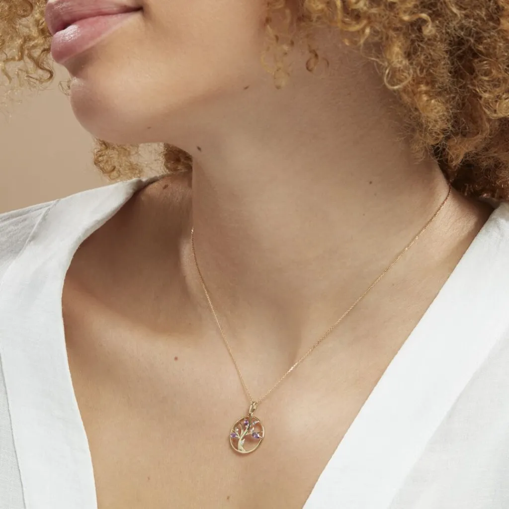Pendentif Arbre De Vie Or Jaune 375/1000 Améthystes Marquises
