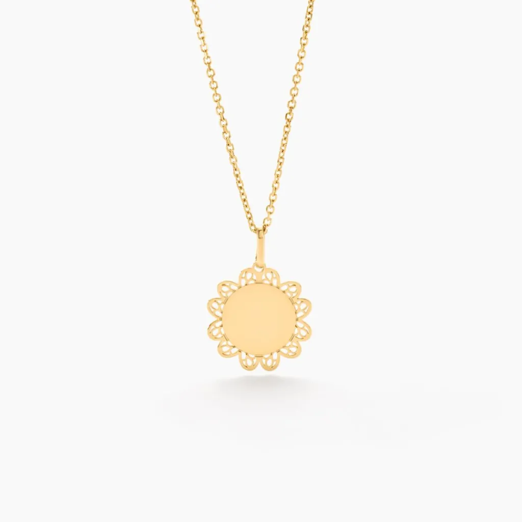 Pendentif Or Jaune 375/1000 Pastille Contour Filigrane Gravable Diametre 11.3mm