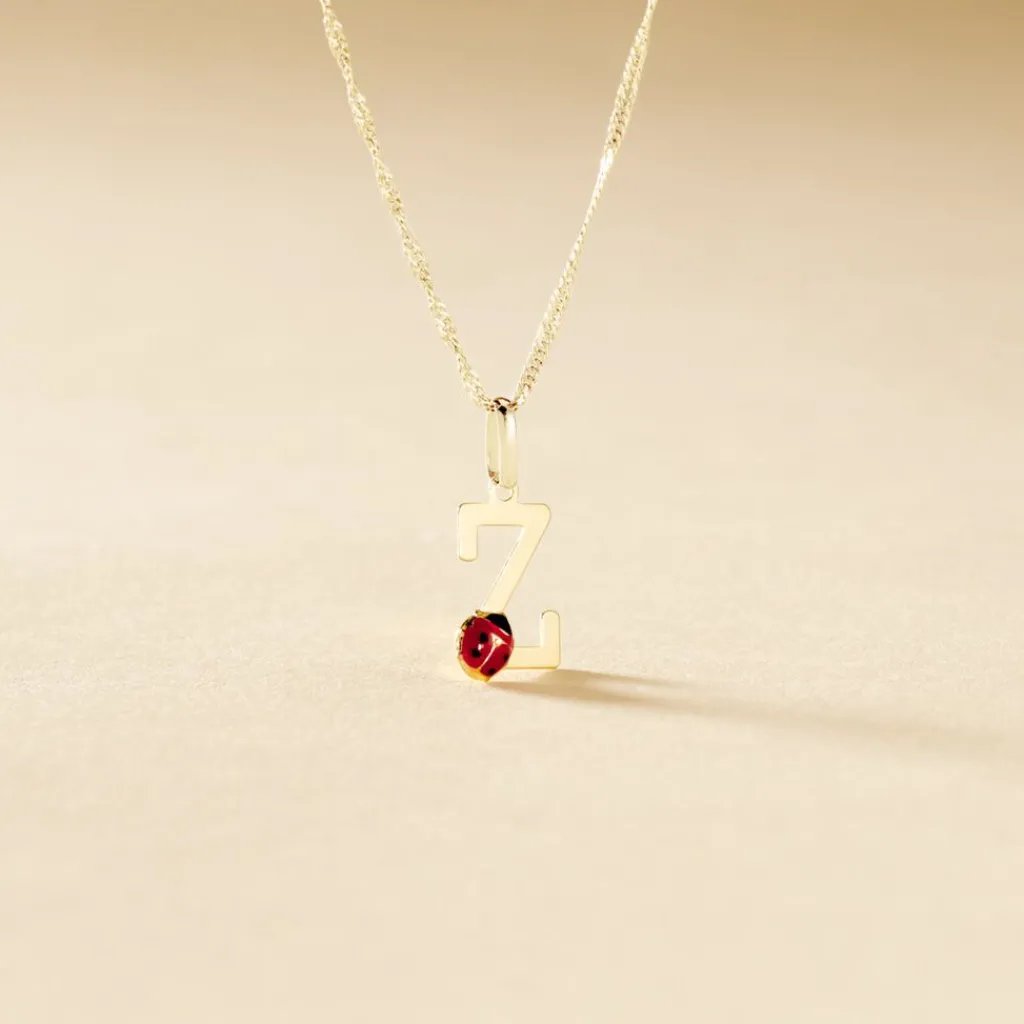 Pendentif Or Jaune 375/1000 Lettre Z Motif Coccinelle Email Noir Et Rouge