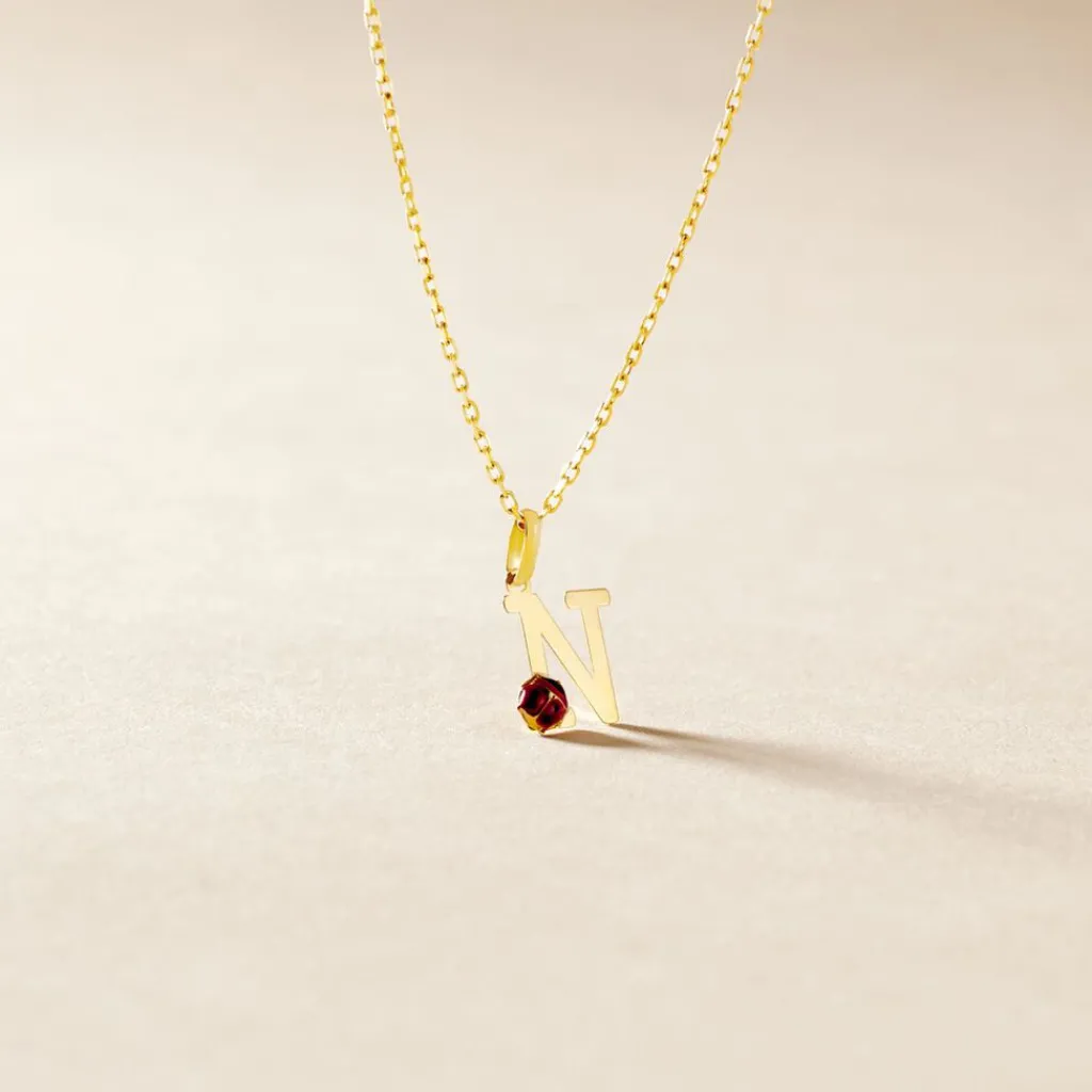 Pendentif Or Jaune 375/1000 Lettre N Motif Coccinelle Email Noir Et Rouge