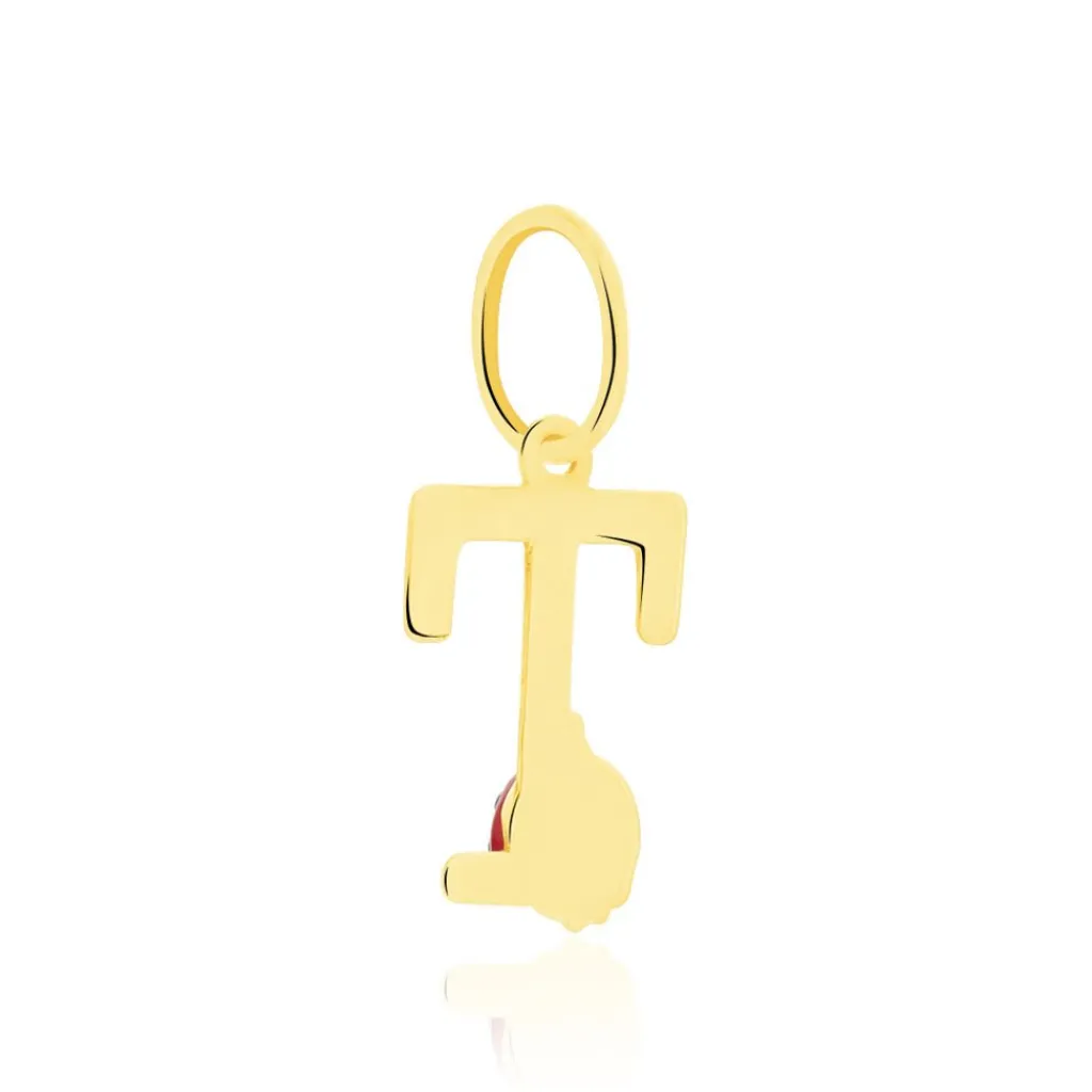 Pendentif Or Jaune 375/1000 Lettre T Motif Coccinelle Email Noir Et Rouge