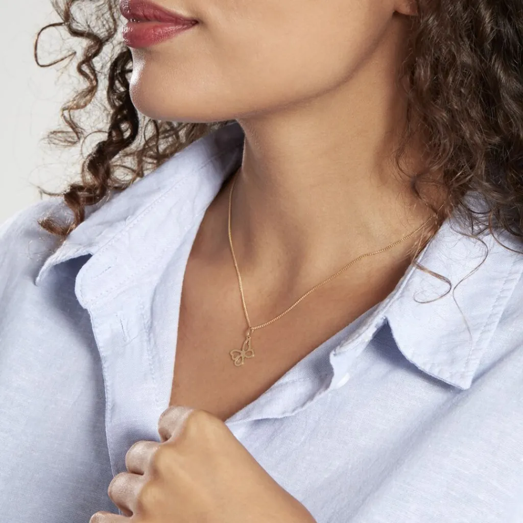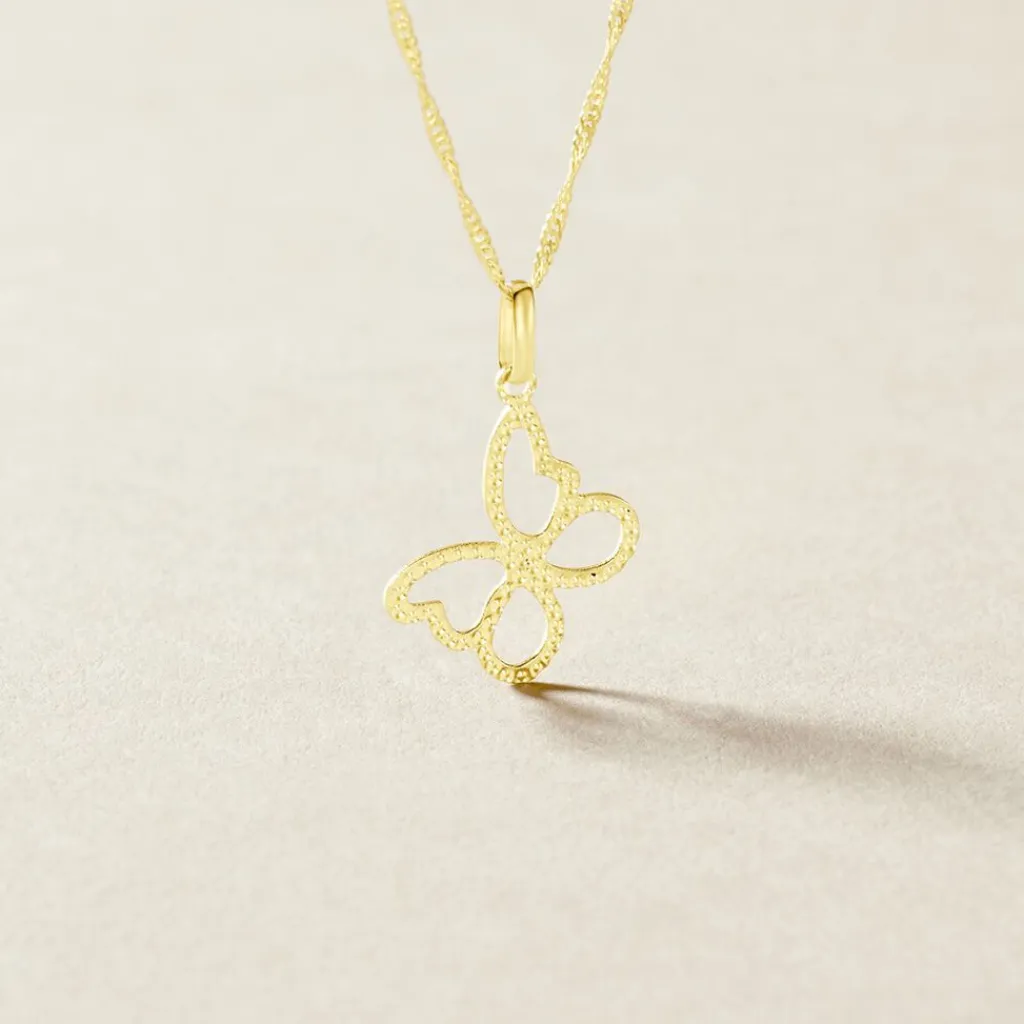 Pendentif Or Jaune 375/1000 Forme Papillon Effet Diamante