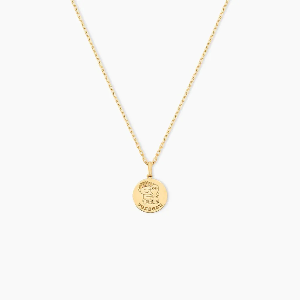 Pendentif Or Jaune 375/1000 Zodiaquemedaille Ronde Signe Verseau