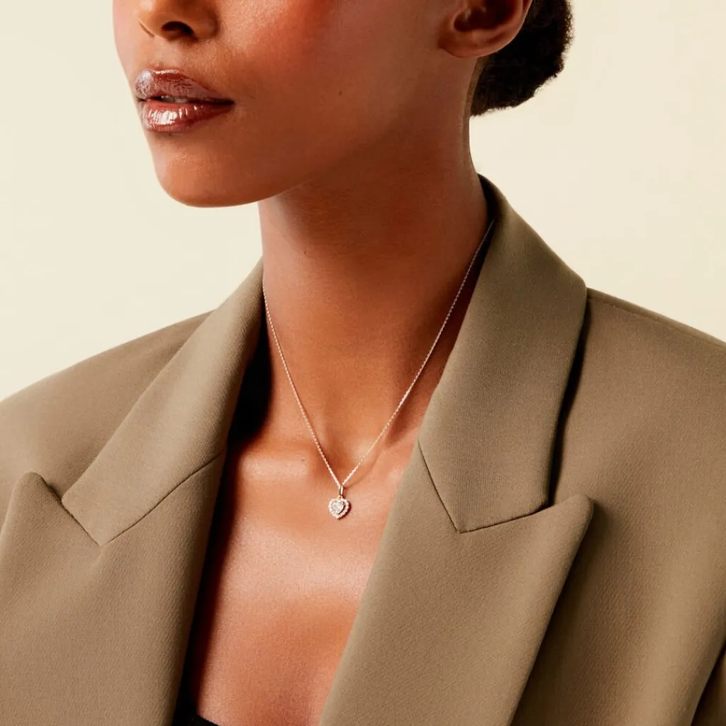 Pendentif Or Jaune 375/1000 C艙ur Pavage Oxydes De Zirconium