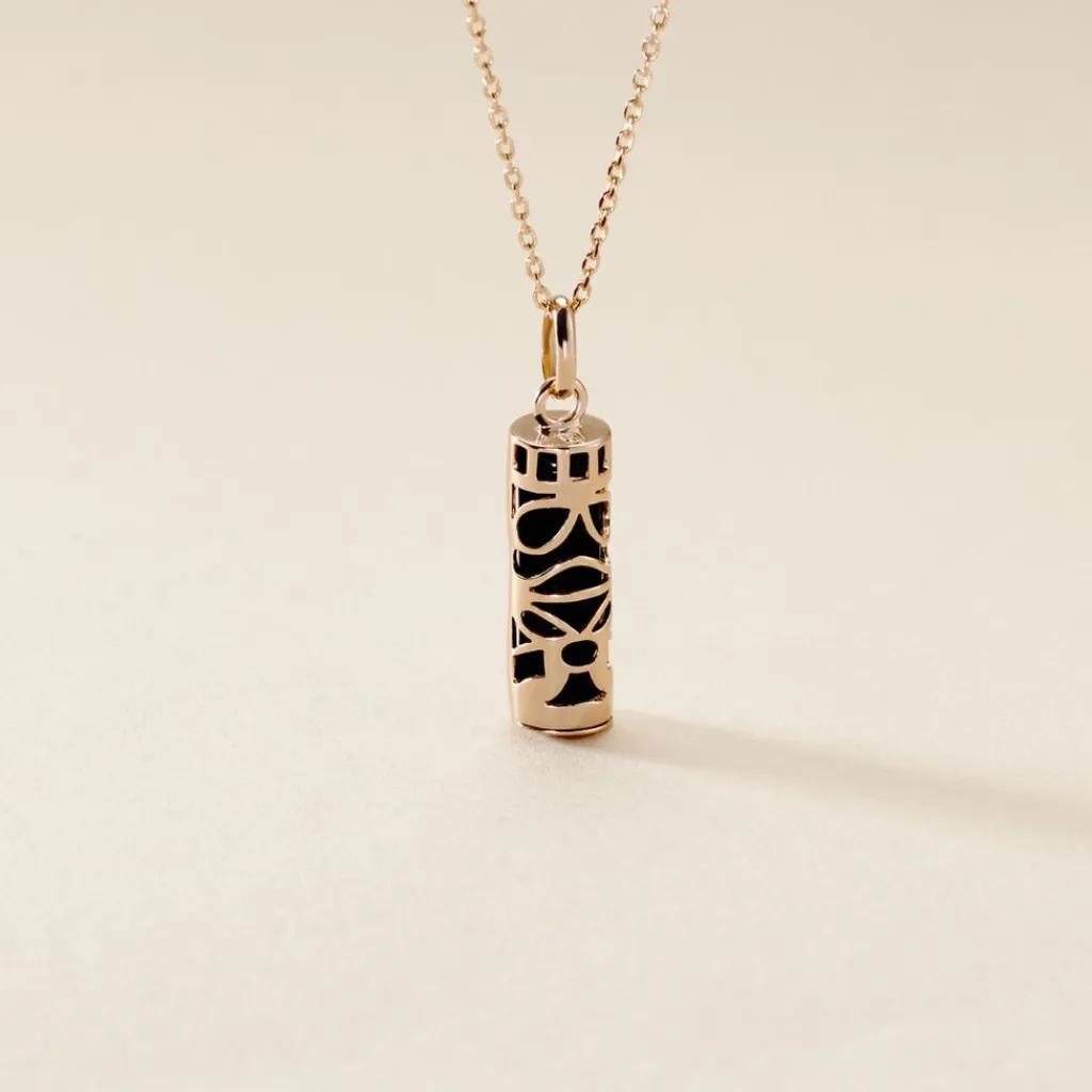Pendentif Plaqué Or Jaune Forme Tube Motifs Ethnique Et Pierre Noire