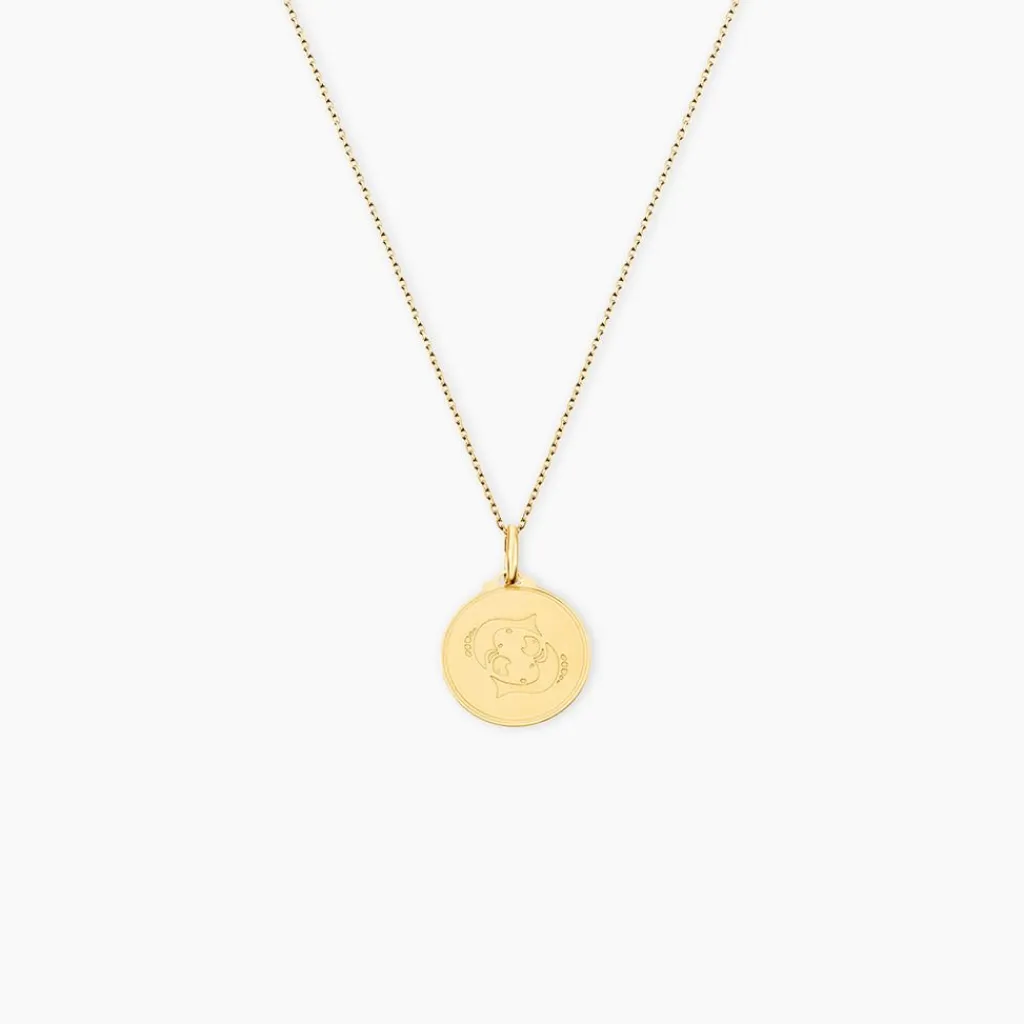Pendentif Or Jaune 375/1000 Medaille Ronde Motif Poisson