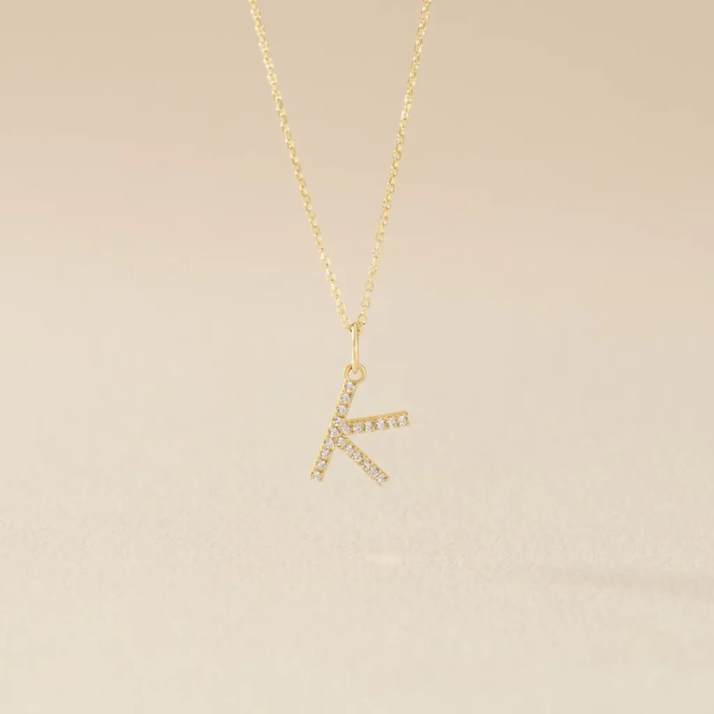 Pendentif Or Jaune 375/1000 Lettre K Oxydes De Zirconium